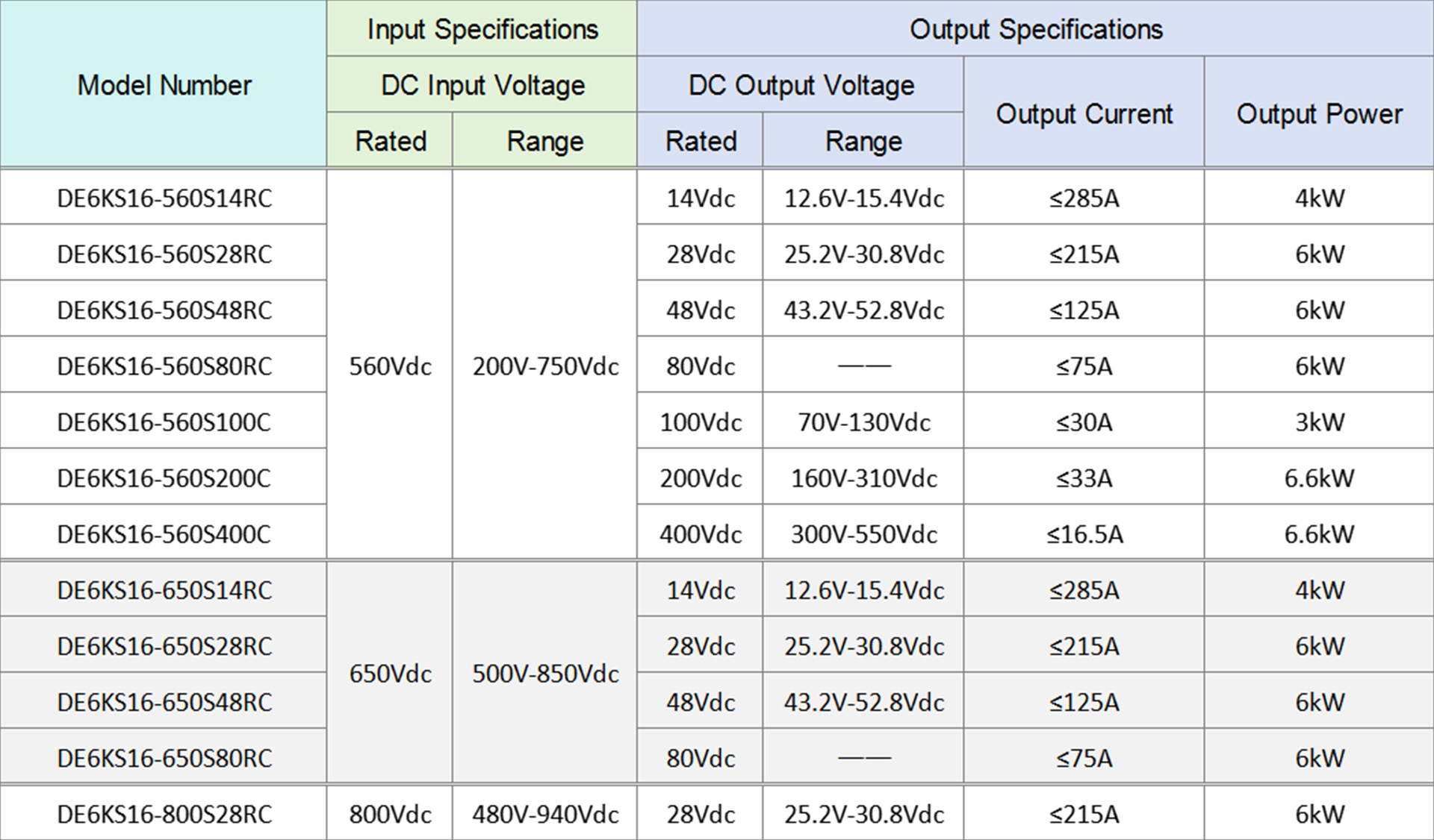 DE6KS16-560S14RC, DE6KS16-560S28RC, DE6KS16-560S48RC, DE6KS16-560S80RC, DE6KS16-560S100C, DE6KS16-560S200C, DE6KS16-560S400C