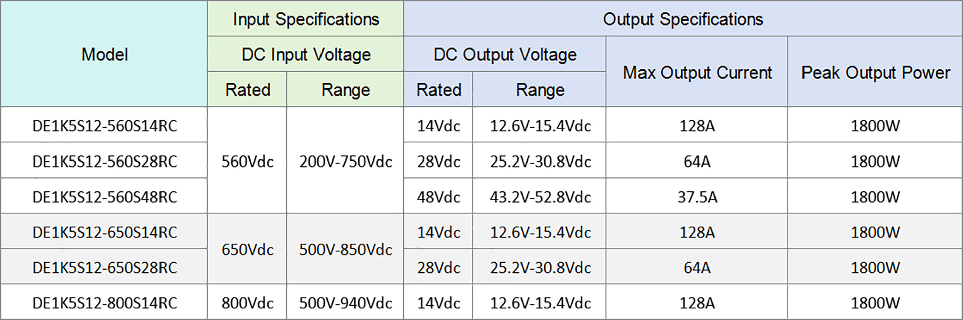 DE1K5S12-560S14RC, DE1K5S12-560S28RC, DE1K5S12-560S48RC, DE1K5S12-650S14RC, DE1K5S12-650S28RC, DE1K5S12-800S14RC