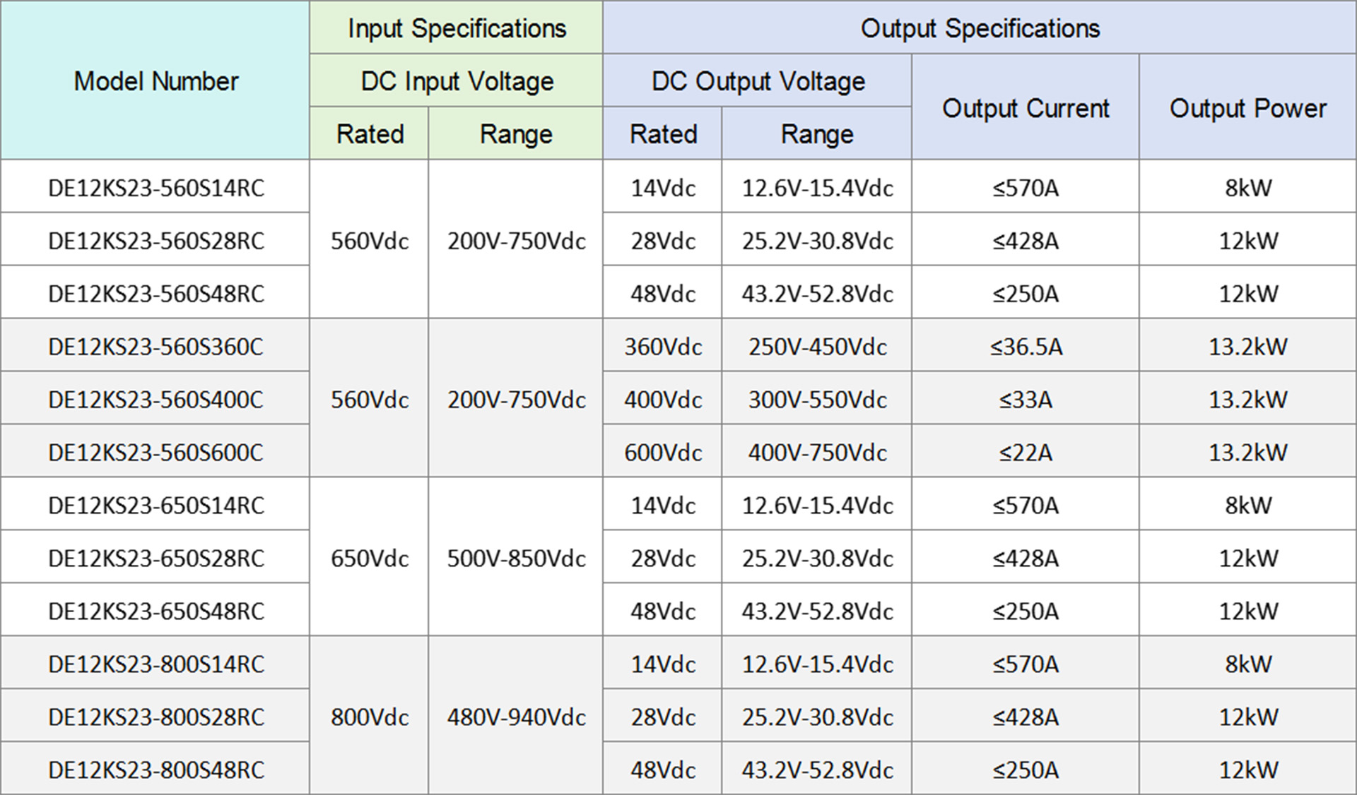 DE12KS23-800S14RC, DE12KS23-800S28RC, DE12KS23-800S48RC