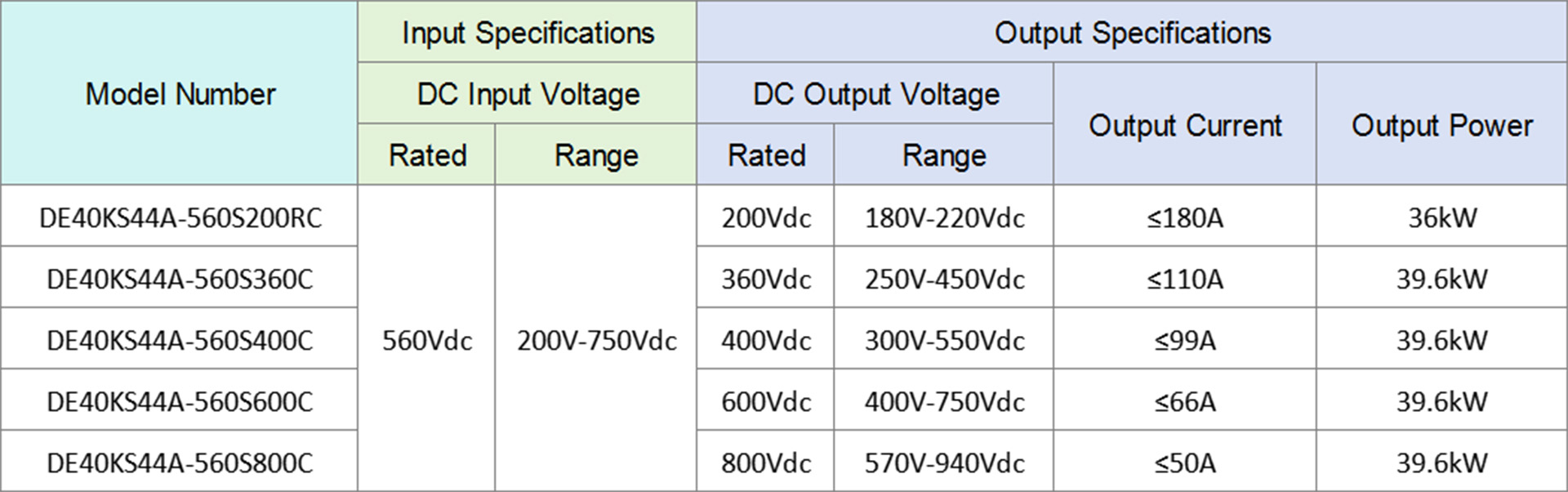 Rated Output Voltage: 200Vdc, 360Vdc, 400Vdc, 600Vdc, 800Vdc